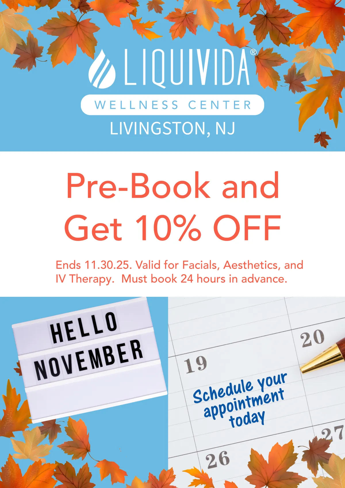 All offers end 11/30/2025 – spaces are limited, so pre-book your appointment to lock in these savings today!